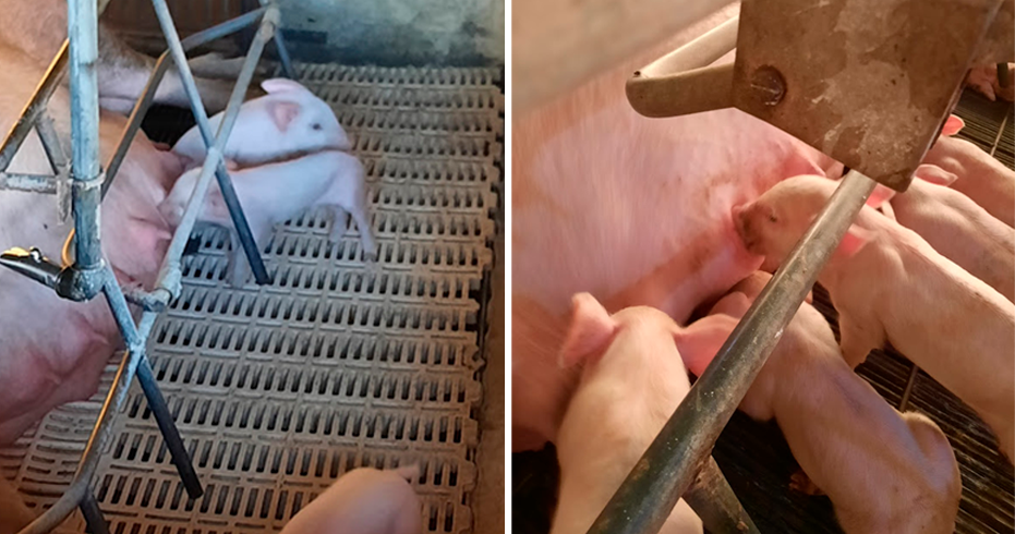 - Aunque no sea la hora de comer, compruebe si algún lechón sigue insistiendo en recibir algo extra de la ubre de la cerda.